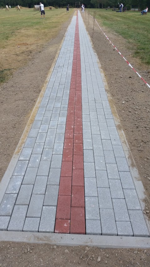 Bitte den bisher gepflasterten und noch nicht gepflasterten Bereich nicht betreten!