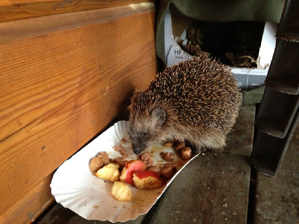 Unser neues Maskottchen „wächst und gedeiht“, hat einen guten Appetit und verschlingt laut schmatzend Katzenfutter, Igelfutter und Apfelstückchen.